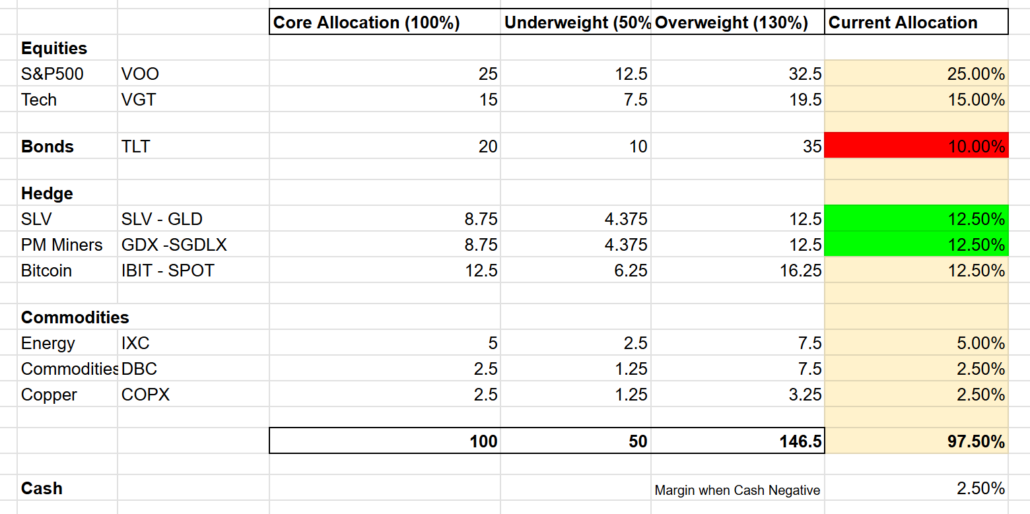Gold/Metals – Overweight Position. Transitioned from SLV to GLD.